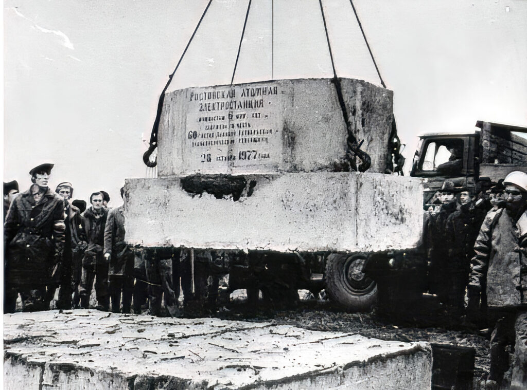 Первый камень в основание самой южной атомной электростанции заложили в 1977‑м, полномасштабное строительство начали в октябре 1979‑го. Для возведения станции активно привлекали ресурсы и мощности стройбазы организации, занятой в то время возведением Волгодонского завода тяжелого машиностроения, — «Атоммаша». Предполагалось, что именно этот завод изготовит корпус реактора, парогенераторы и другое тяжелое оборудование реакторного отделения для строящейся рядом АЭС.