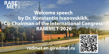 The Co-Chair of the RAREMET-2026 Organizing Committee has addressed future international participants in a special video message ahead of the upcoming Congress to be held in Moscow Moscow on May 20–22, 2026. In his remarks, he emphasized that only two months remain before the event opening, while preparations are in full swing, and participant registration is actively underway on the Congress website https://redmet.en.giredmet.ru/external link, opens in a new tab .