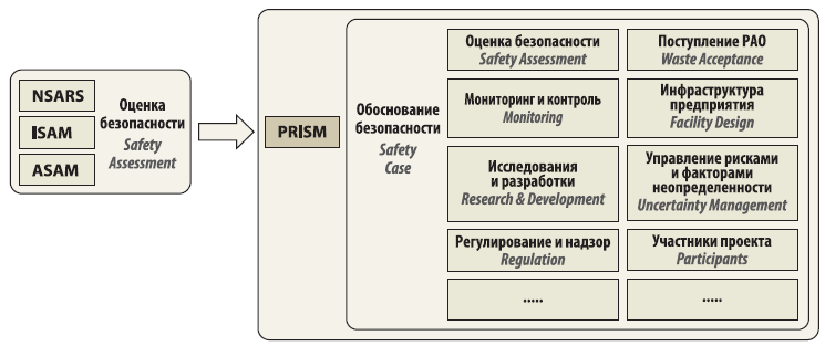 С 1997 года работы по совершенствованию метода прогнозной оценки безопасности выполнялись специалистами ГУП МосНПО «Радон» в рамках научных координационных программ МАГАТЭ (ISAM [4-5], ASAM, PRISM, SADRWMS) и опробовались на различных объектах приповерхностного захоронения РАО. При выполнении этих проектов были сформулированы основные положения методологического подхода к оценке безопасности.