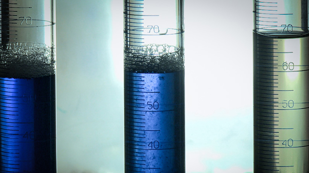 В первой пробирке — необработанные сточные воды с текстильным красителем, во второй — вода после облучения, а в третьей — вода, обработанная более высокой дозой облучения.МАГАТЭ 1. Электронно-пучковая обработка для очистки промышленных сточных вод