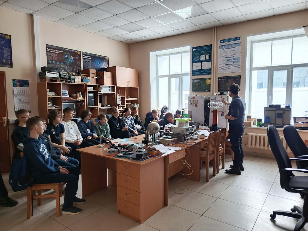 13–15 апреля в Высшей инженерной школе САФУ состоялся трехдневный интенсив — весенняя школа «Современные достижения физики и техники». В ней приняли участие 28 слушателей — учащиеся 7–10-х классов из восьми школ Архангельской области. Наставниками и организаторами программы выступили пять участников дубненской школы «Учителя будущего». Экспертную помощь им оказали доцент кафедры фундаментальной и прикладной физики САФУ Виктория Юлкова и ведущий методист УНЦ ОИЯИ Петр Ширков.