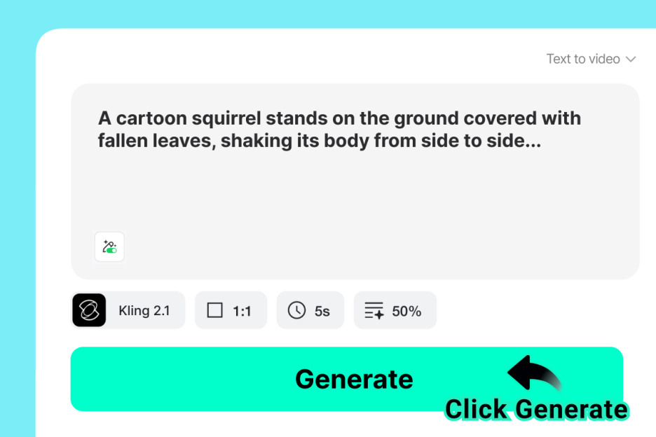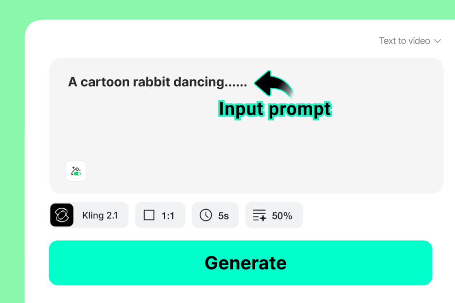 Начните с того, что напишите, что вы хотите увидеть. Это может быть всё, что угодно: сцена из истории, рекламный ролик, мотивирующая цитата или короткая реклама. ИИ «читает» ваши слова как режиссёр фильма. Он понимает атмосферу, настроение и детали, чтобы превратить вашу идею в плавное и анимационное видео.