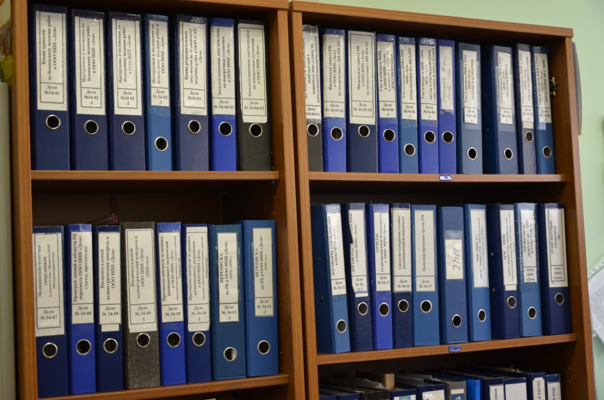 Организация поверки потребовала перестройки службы радиационной безопасности. По мере роста метрологической службы, росла и СРБ, росла отчётность. Видите, сколько здесь папок с документами? Именно такого объёма требуют сегодняшние нормы. У нас более ста источников излучения, и по каждому из них нужно постоянно отчитываться.