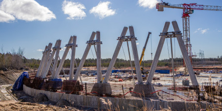 На строящемся третьем энергоблоке ВВЭР-1200 Ленинградской АЭС-2 началось устройство колоннады башенной испарительной градирни