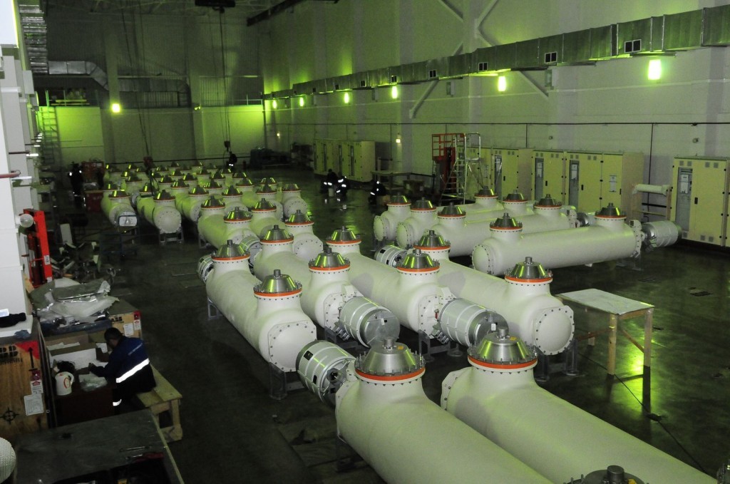 На строительной площадке Ленинградской АЭС-2 ведутся строительно-монтажные работы по объекту КРУЭ. Это высоковольтное распределительное устройство с газовой изоляцией, предназначенное для приема и распределения электрической энергии на напряжение 330 кВ.