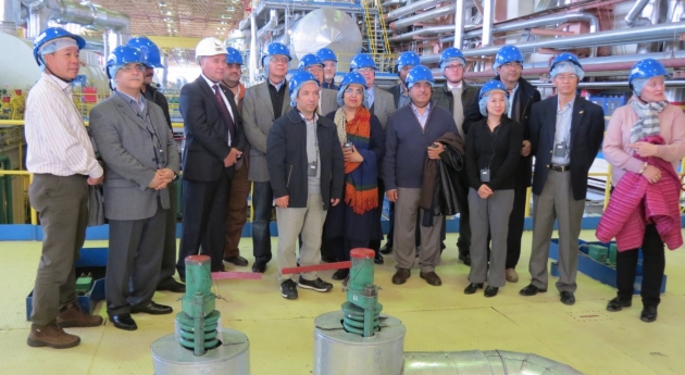 Следующим пунктом в программе посещения стала Кольская атомная станция. Участники визита побывали на блочном щите управления, посетили машинный зал турбинного цеха.