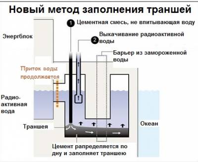Этот план уже получил одобрение в Агентстве по ядерному регулированию Японии. Согласно плану, Токийская электроэнергетическая компания (ТЕРСО) будет заполнять траншеи возле 2-го и 3-го энергоблоков специальной цементной смесью, одновременно откачивая скопившуюся там радиоактивную воду.