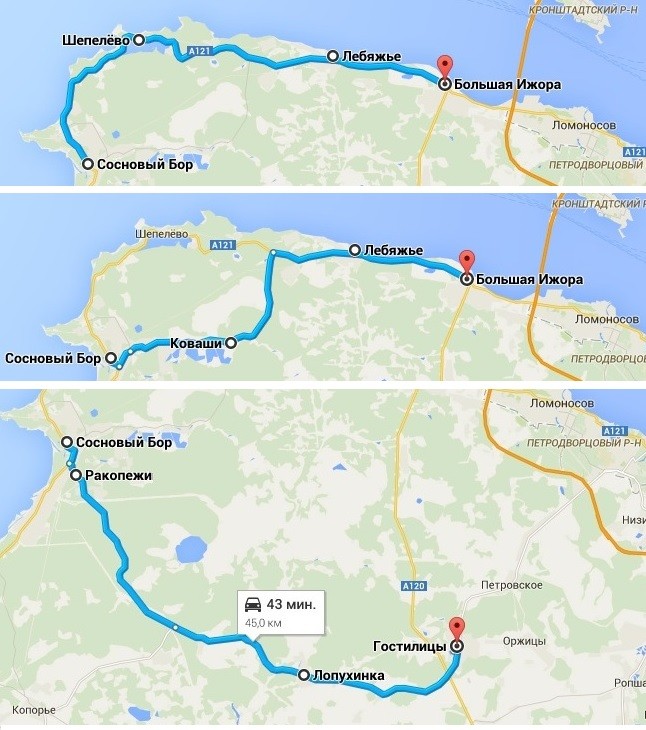 - Сосновый Бор – Коваши – Лебяжье – Большая Ижора;