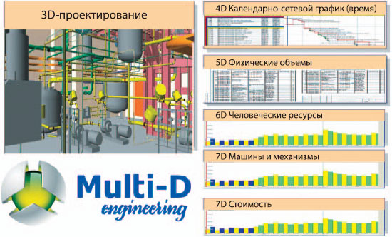 Инновационная технология Multi-D позволяет управлять проектированием и сооружением сложных промышленных объектов, в том числе атомных электростанций. Например, она успешно используется при строительстве Ростовской АЭС.