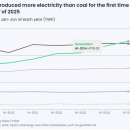 Доля электрической энергии, произведённой в прошлом, 2015 году из возобновляемых источников, согласно отчёту Международного энергетического агентства, оказалась выше произведённой традиционным способом на угольных станциях. Это событие произошло впервые в истории, а суммарный объём выработки возобновляемой энергии достиг в 2015 году 150 гигаватт.