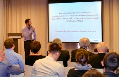 С докладом «Автоматизированный комплекс радиационного и технологического контроля филиала ФГУП «РосРАО» «Сибирский территориальный округ» выступил начальник службы радиационной безопасности филиала Евгений Воропаев. Он рассказал об основных характеристиках комплекса и его структуре, проанализировал основные полученные результаты, изложил перспективы развития системы.