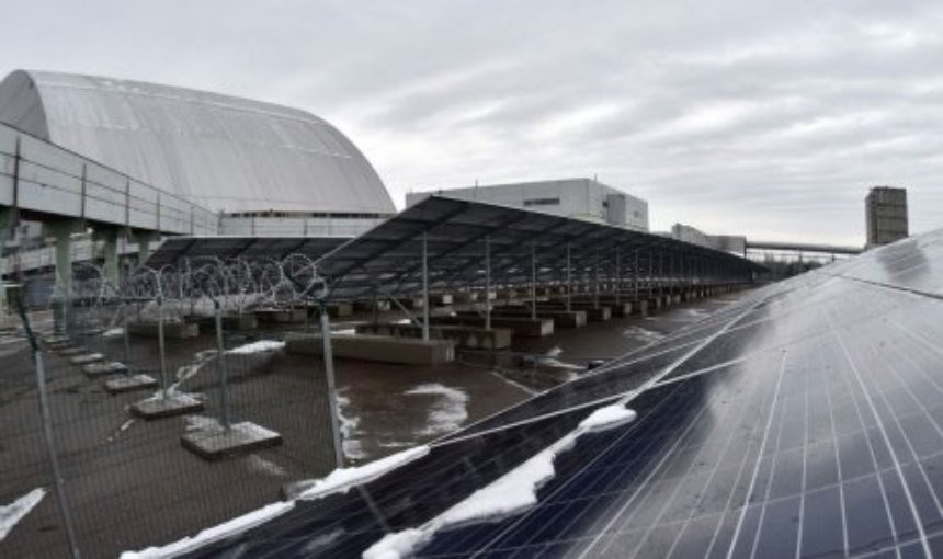 В 100 метрах от укрытия Чернобыльской АЭС окончен монтаж солнечных панелей. Здесь будет новая гелиоэлектростанция. Ее сооружением занималась украинско-немецкая компания «Solar Chernobyl». Сейчас совсем близко к бетонному саркофагу установлено 3800 солнечных панелей.