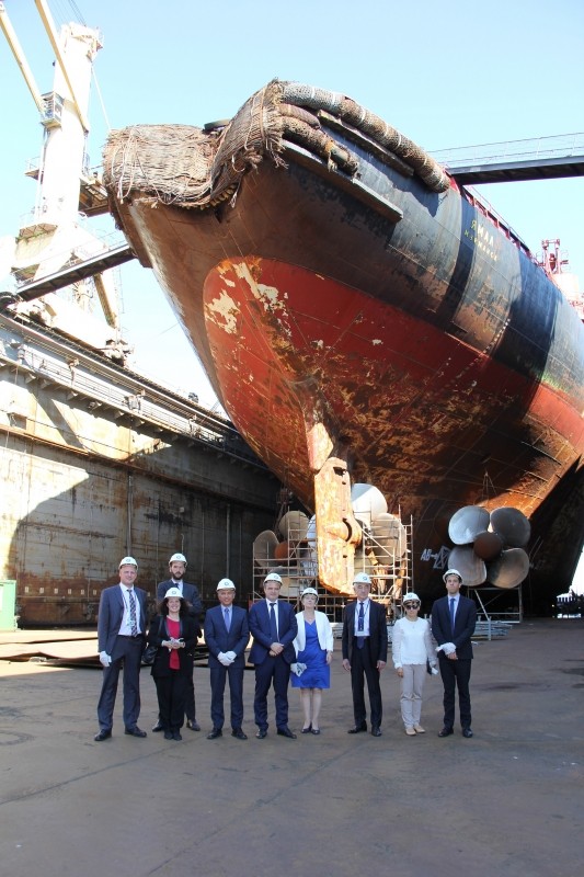 В сопровождении и.о. генерального директора ФГУП «Атомфлот» Андрея Смирнова Сильви Берманн посетила плавучий док, в котором проходит плановый ремонт атомного ледокола «Ямал». Капитан Александр Лембрик провел экскурсию по атомоходу, ознакомив французскую делегацию с основными принципами работы судна и обеспечения ядерной безопасности на борту.