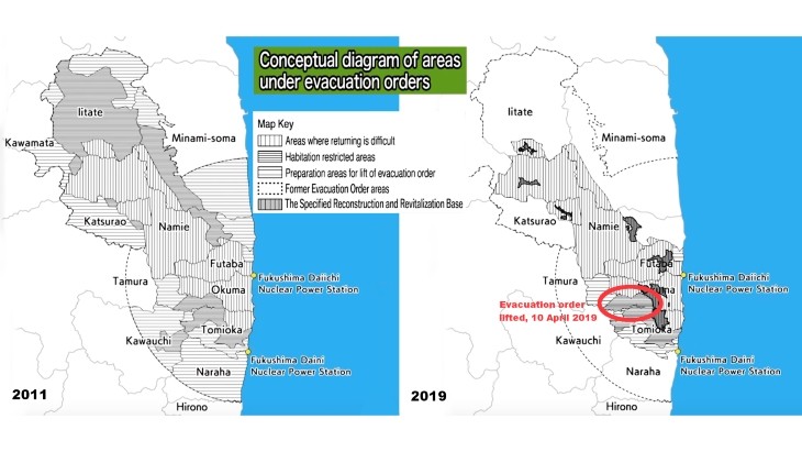 Год назад во всех городах, где были отменены приказы об эвакуации, были открыты школы, а в начале этого года вступило в строй новое здание мэрии Окумы. Ожидается, что к апрелю 2020 года вся железнодорожная линия Joban, обслуживающая города вблизи побережья, полностью возобновит свою работу.