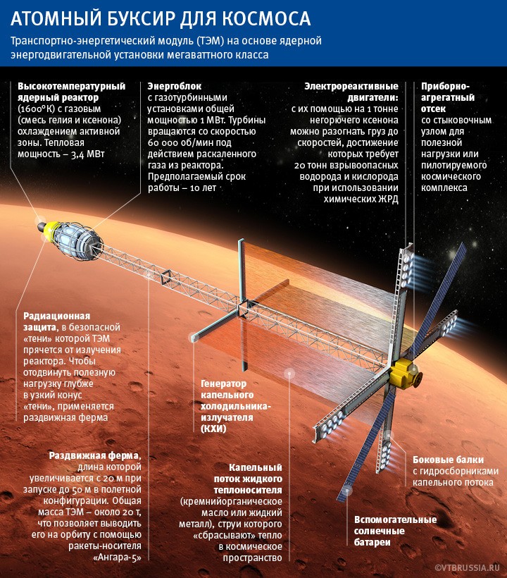Исполнитель по контракту также должен представить предложения по проектному облику электроракетного роторного двигателя в составе ядерной энергодвигательной установки межорбитального буксира.