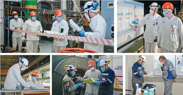 Комиссия проверяет правильность организации рабочих мест, выполнение процедур нарядно-допускной системы, наличие ремонтной документации и ознакомление с ней персонала, соблюдение требований технологических регламентов, ядерной и пожарной безопасности, выполнение работ по дозиметрическим нарядам. На контроле — применение мер безопасности при работах на вскрытом оборудовании, с грузоподъемными механизмами и подъемными сооружениями, ручным слесарным инструментом, сварочным оборудованием, электроинструментом, наличие предупреждающих надписей, знаков, плакатов безопасности и ограждений опасных зон. Особое внимание — средствам индивидуальной защиты, их наличию и правильности применения. С этого года инспекторам ремонтных площадок также поручен контроль соблюдения санитарных и эпидемиологичеких мер, которые стали важной составляющей культуры безопасности на предприятиях Росатома.