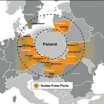 В документе говорится, что в случае катастрофы, с вероятностью на 69%, страны, находящиеся по соседству с Польшей, получат большую дозу радиации, чем она сама.