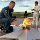 "Год назад зажженный в Олимпии в Греции огонь прибыл в Японию. В течение этого года мир переживал сложные времена, а огонь продолжал гореть тихим, но сильным пламенем. Его пламя как будто ждало этого дня, когда в Японии расцветает сакура. Пусть он укажет нам дорогу надежды в темноте, сияя светом надежды", - заявила глава организационного комитета Японии Сэйко Хасимото.