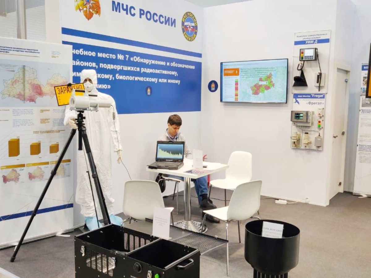 На стенде МЧС представлены собственные инновационные разработки НПП «Доза»: универсальный дозиметр-радиометр МКС-17Д «Зяблик»external link, opens in a new tab с новыми блоками детектирования, прибор радиационной и химической разведки ПРХР-Дexternal link, opens in a new tab, система радиационного контроля «Фрегат»external link, opens in a new tab, дозиметр гамма и рентгеновского излучения ДКГ-09Д «Чиж»external link, opens in a new tab и другие.
