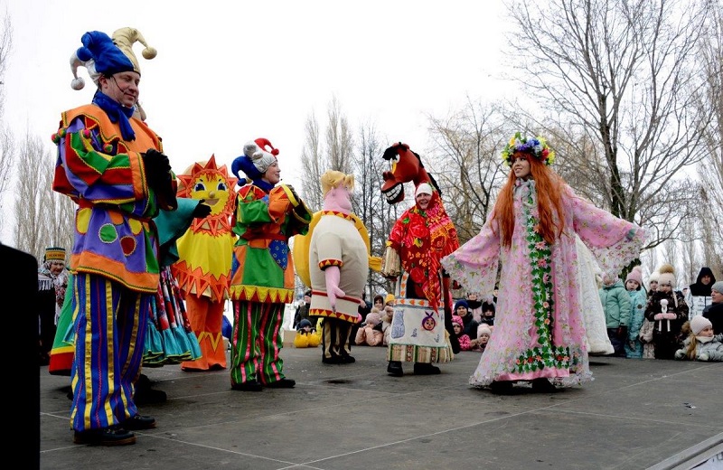 Артисты «Антареса» устроили театрализованное представление со скоморохами, танцами, хороводами. На сцене парка встретились два времени года, и балаковцы просили Зиму уступить место приближающейся Весне. Гуляния сопровождались веселыми конкурсами и лотереей с призами, а также угощениями: сладкой ватой, попкорном, и, конечно, блинами.