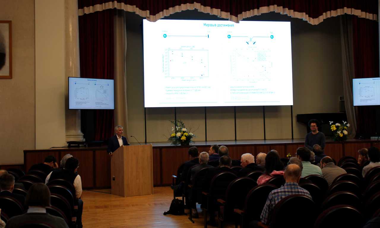 Научная часть Чтений была посвящена состоянию дел в физике квантовых компьютеров. Директор ФИЦ КазНЦ РАН, д.ф.-м.н., чл.-корр. РАН А.А. Калачёв рассказал об актуальных задачах и перспективах квантовых повторителей. Профессор МГУ им. М.В. Ломоносова, д.ф.-м.н. С.П. Кулик представил доклад «Квантовые вычисления: проблемы и перспективы». Профессор РАН В.И. Белотелов из Российского квантового центра МГУ им. М.В. Ломоносова рассказал о сверхбыстром управлении спинами в оптомагнетизме и о его перспективах использования при создании квантового компьютера.