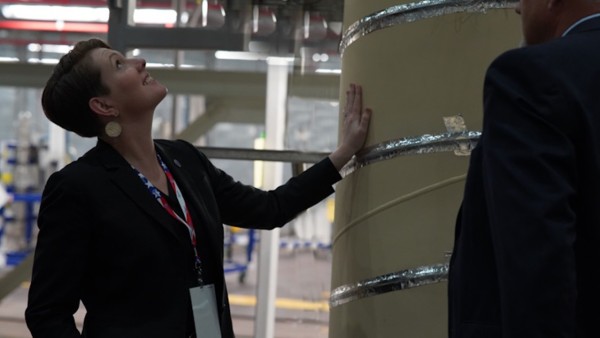 Помощник секретаря МЭ по атомной энергии Кэтрин Хафф смотрит на одну из центрифуг во время мероприятия, посвященного запуску демонстрационного каскада HALEUCentrusПо данным компании, это первый новый завод по обогащению урана, построенный по американской технологии и начавший производство с 1954 года. Обогатительные операции начались на заводе в октябре.