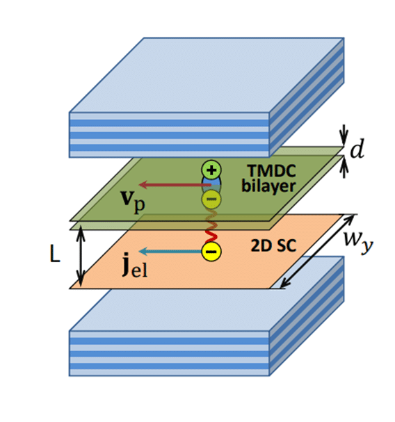 Не так давно российские исследователи изучили, как сверхпроводник, помещенный в «сэндвич» с зеркалами и полупроводником, может взаимодействовать с экситон-поляритонами. Исследовательская группа Юрия Лозовика, профессора МИЭМ ВШЭ, предположила, что, помимо обычного взаимодействия, возможен и эффект взаимного увлечения сверхпроводника и экситон-поляритонов. Полупроводник между зеркалами позволяет получить сверхтекучую жидкость из экситон-поляритонов, а течение этой жидкости может запускать ток электронов в сверхпроводнике. Авторы статьи посчитали, насколько сильным будет этот эффект, используя реалистичные параметры современных полу- и сверхпроводящих материалов.