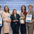 Награду получили начальник управления документационного обеспечения Госкорпорации «Росатом» Марина Ермакова и руководители проекта от АО «Гринатом» — начальник отдела проектов импортозамещения и СМП Денис Зубарев и директор центра цифровых технологий документооборота, бизнес-партнер по продуктам документооборота Никита Петров.