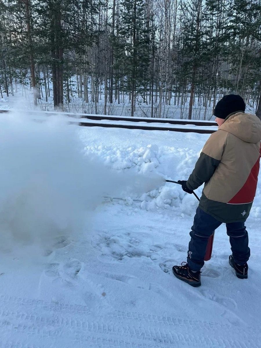 Самым интересным пунктом субботней программы стала тренировка юных пожарных. Ребята под наставничеством старших товарищей, отработали приемы по тушению условного очага пожара с помощью порошкового огнетушителя.