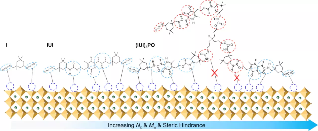 Было обнаружено, что более массивные молекулы лучше прилипают к материалу, поскольку у них больше мест связывания, которые могут взаимодействовать с кристаллами перовскита. Это означает, что они способны ослаблять дефекты и предотвращать деградацию. Кроме того, крупные молекулы приводят к образованию более крупных зерен перовскита, повышая тем самым прочность материала.