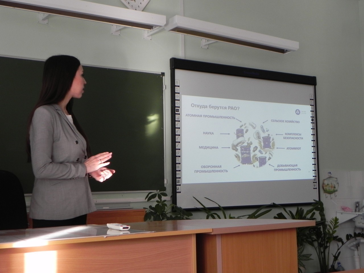 В рамках проекта «Просто о радиации» главный специалист филиала «Северский» ФГУП «НО РАО» Юлия Тарасова провела урок для учеников 10 и 11 классов школы №78.