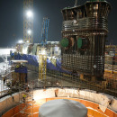 Сейчас полным ходом идут работы в реакторном здании. В этом году планируется завершить монтаж оболочки реактора. Продолжаются работы по укрупнительной сборке ограждающей конструкции БРЕСТ. Монтаж основного технологического оборудования установки выполняют специалисты АО «МСУ-90».