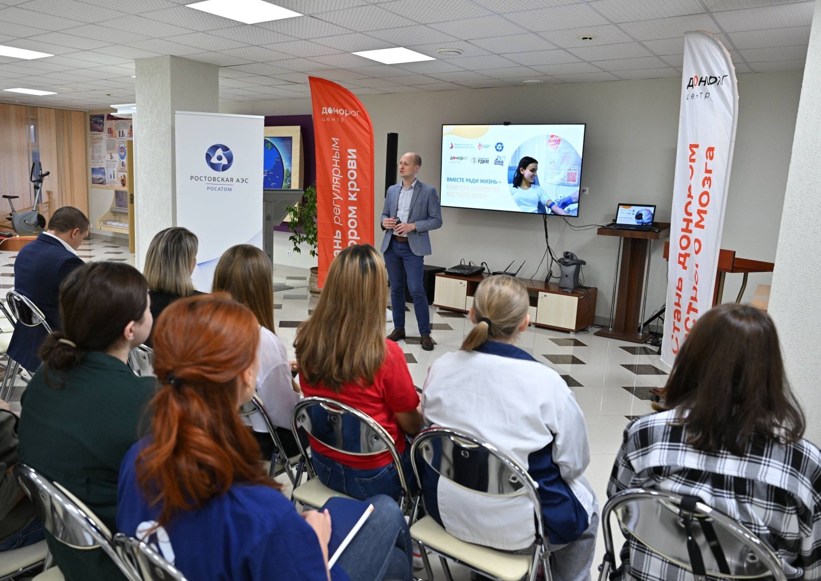 А накануне в информационном центре Ростовской АЭС прошла образовательная акция «Донорство - верное решение». Акцию провела организация молодых атомщиков Ростовской АЭС совместно с Федеральным медико-биологическим агентством (ФМБА) России и АНО «Южный регистр доноров костного мозга»*. Слушатели узнали от экспертов о донорстве, корпоративном волонтёрстве и возможностях спасения тяжелобольных людей с помощью пересадки стволовых клеток.