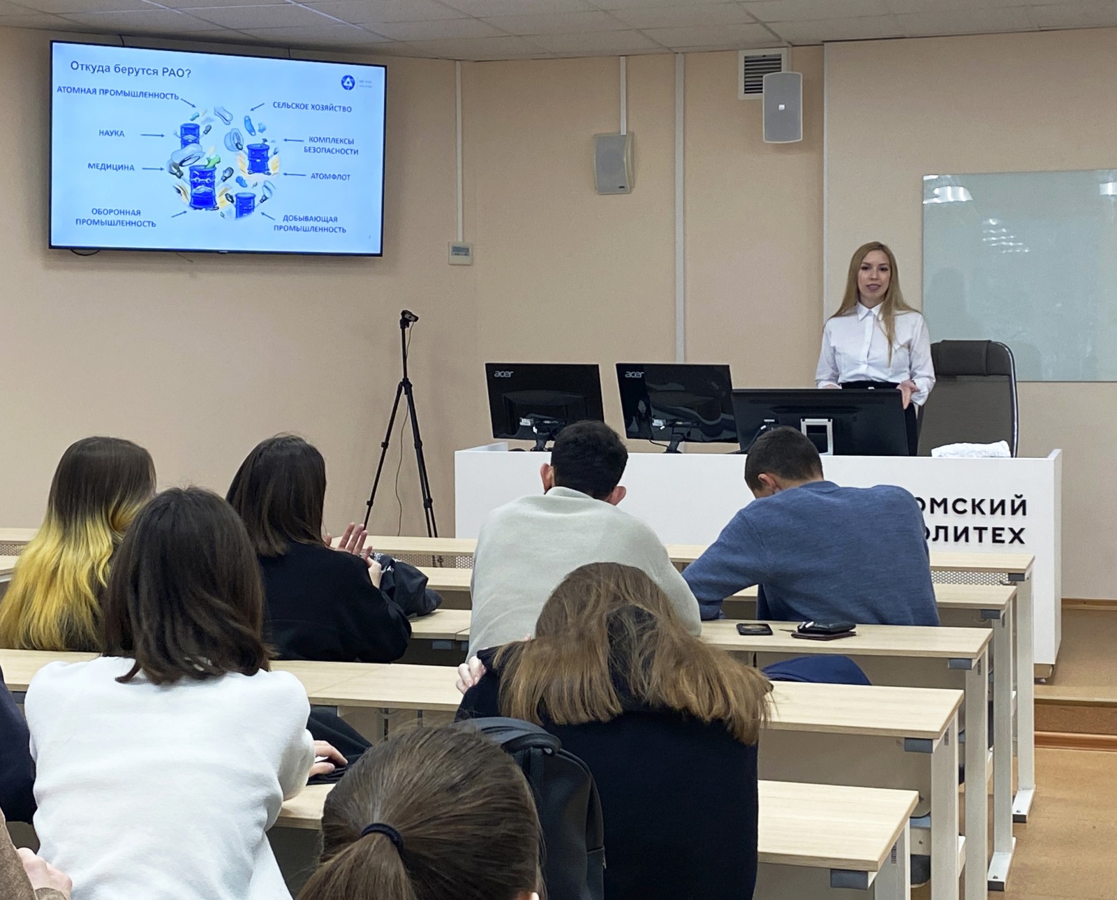 Специалист филиала «Северский» Национального оператора по обращению с радиоактивными отходами Юлия Тарасова провела лекцию в Томском политехническом университете для участников Экологического клуба им. Л.П. Рихванова.