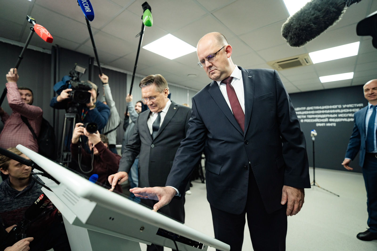 После осмотра токамака Алексей Лихачев и ректор МИФИ Владимир Шевченко провели официальный запуск токамака «МИФИСТ-0» через ЦДУ Единого информационного пространства.