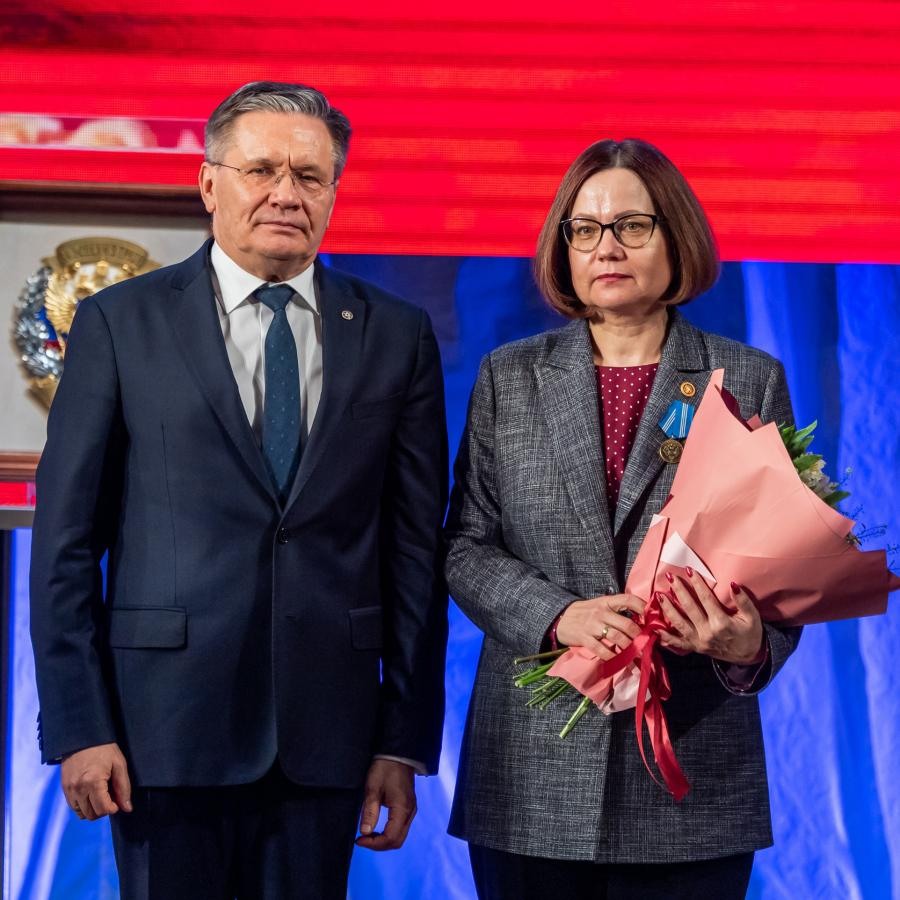 Генеральный директор «Росатома» вручил отраслевые знаки отличия руководителю СФТИ О.В.Линник и заведующему кафедрой общей физики А.М.Колмогорцеву.