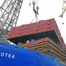 Специалисты Балтийского завода ОСК погрузили на строящийся атомный ледокол "Чукотка" укрупнённый блок секций надстройки судна.