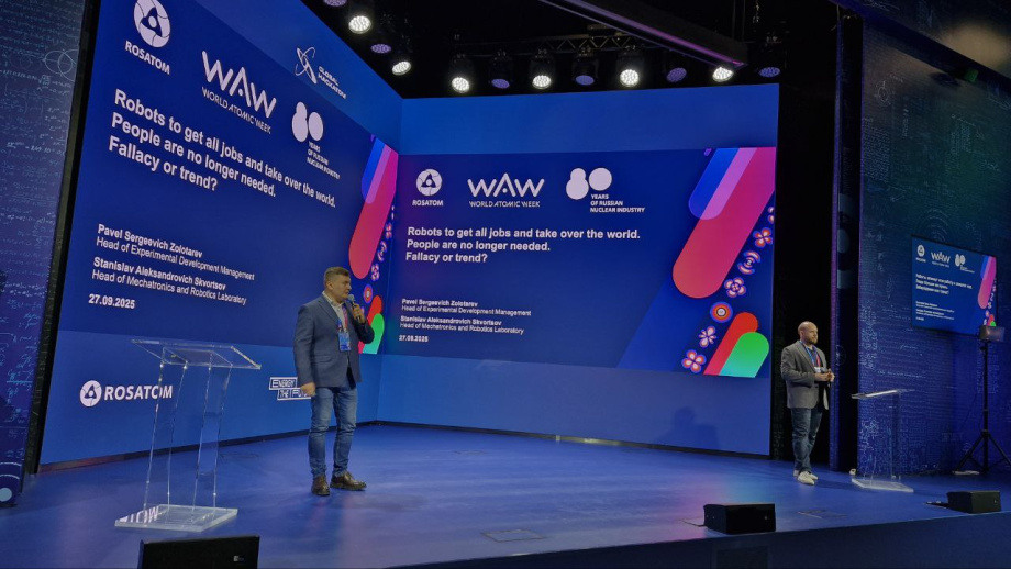 Ведущий специалист по администрированию «Петрозаводскмаш» Елизавета Фокина рассказала, как цифровизация, BI-аналитика и искусственный интеллект помогают сделать работу инженеров эффективнее. Работники лаборатории мехатроники и робототехники ЦКБМ Станислав Скворцов и Павел Золотарев представили передовые разработки в области робототехники и экспериментальных технологий.
