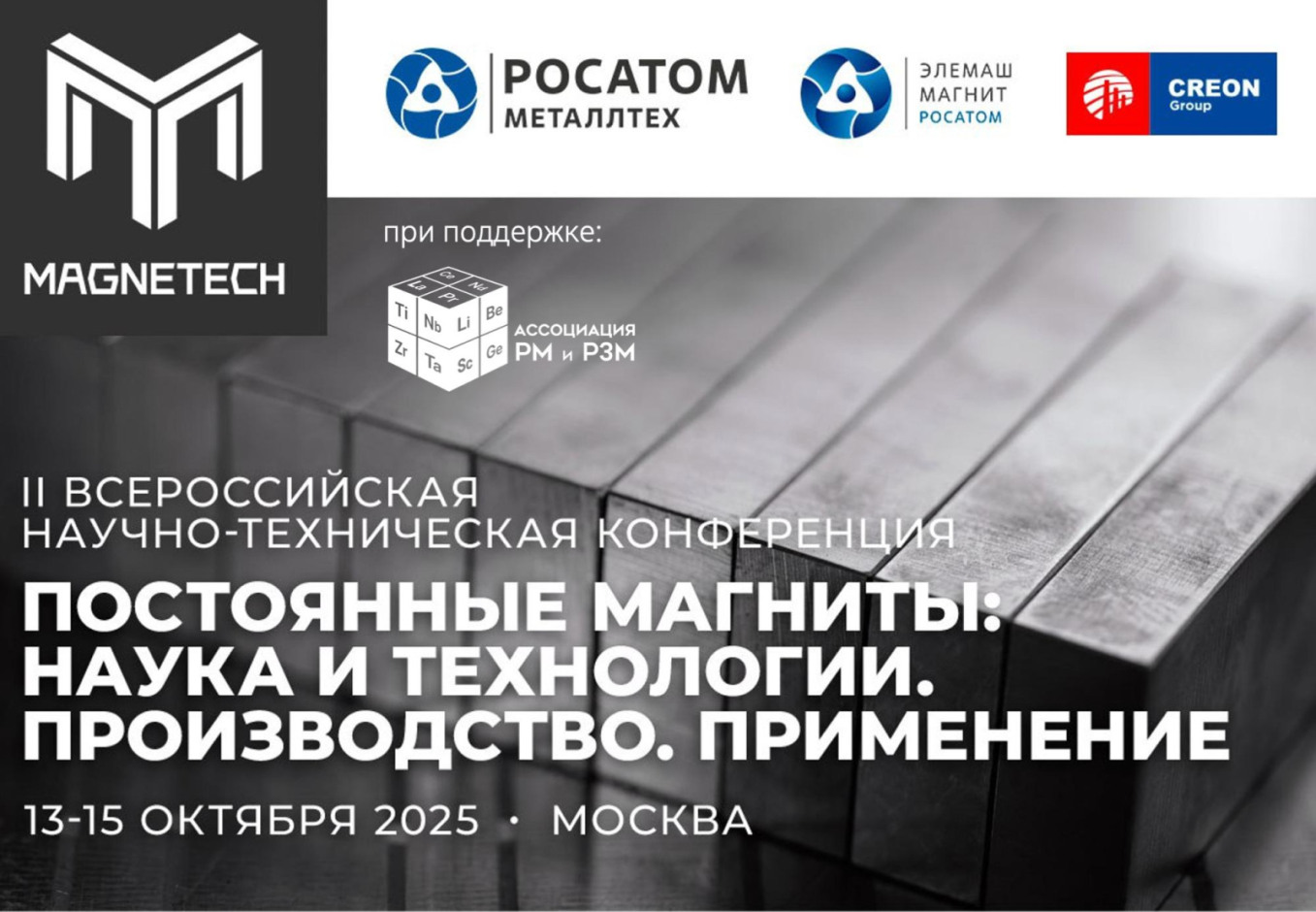 Инвестиционные проекты и перспективы отрасли постоянных редкоземельных магнитов в России будут одними из ключевых вопросов на II Всероссийской научно-технической конференции «Постоянные магниты: наука и технологии. Производство. Применениеexternal link, opens in a new tab», (которая пройдет с 13 по 15 октября 2025 года в Москве, на территории ВДНХ, в павильоне «Атом».