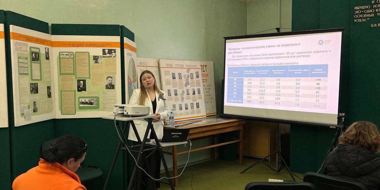 Научный сотрудник лаборатории технологий обращения с радиоактивными отходами Радиевого института Полина Давыдова представила диссертацию на соискание ученой степени кандидата технических наук на тему: «Технология сорбционного извлечения металлов платиновой группы из высокоактивных растворов ПУРЕКС-процесса». Прикладные исследования осуществлялись на базе АО «Радиевый институт им. В.Г. Хлопина». Диссертационный совет подтвердил соответствие научного исследования П.В. Давыдовой критериям диссертационной работы и назначил защиту на 17 декабря 2025 года.