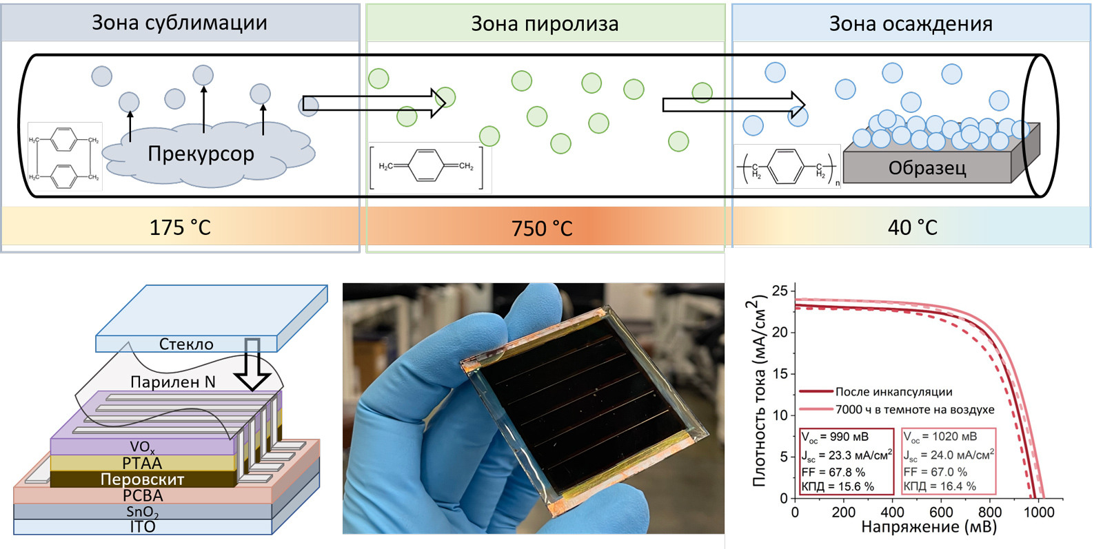 Чтобы защитить устройство от влаги, химических веществ и других внешних воздействий и тем самым продлить его срок службы, ученые заключили фотоэлемент в оболочку из полимера, который устойчив к растворителям и кислотам, имеет высокую температуру плавления и не проводит электрический ток. Для этого исследователи при комнатной температуре поместили фотоэлемент в пары полимера, частицы которого осели на поверхность устройства в виде тонких пленок. Такая обработка называется методом химического осаждения из газовой фазы. Этот способ не повлиял на силу тока и напряжение в устройстве. При этом авторы доказали, что такой метод инкапсуляции продлевает срок жизни фотоэлементов как минимум до 10 000 часов, что уже соизмеримо со временем работы одноразовых батареек в датчиках интернета вещей.