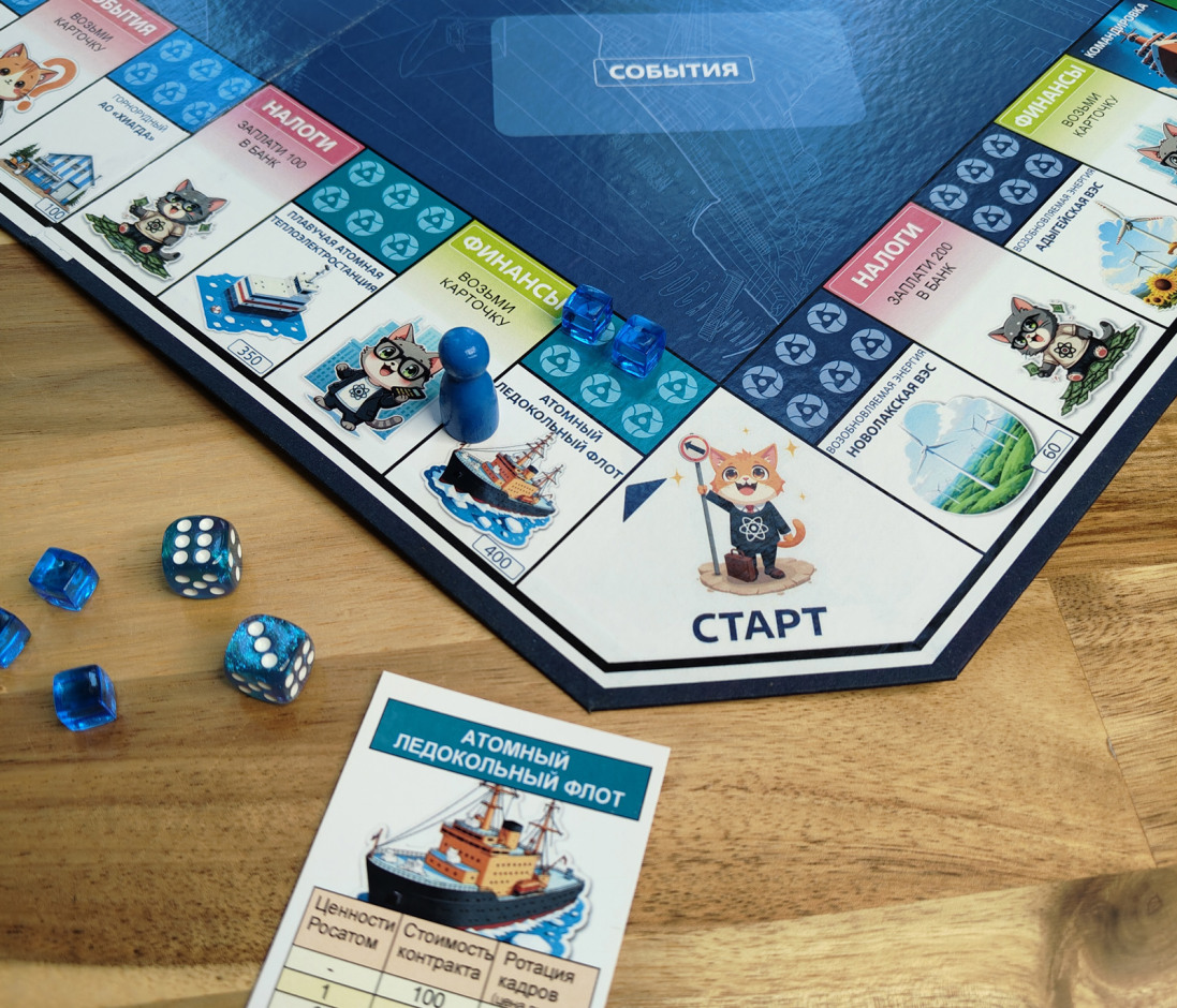 Игра напоминает «Монополию», но с атомной спецификой. Игроки по очереди бросают кубики, двигаются по игровому полю, развивают предприятия и генерируют ресурсы — «атомы». Здесь нет задачи «обанкротить» соперника — наоборот, победа достигается через командную работу, лидерство и развитие компетенций.