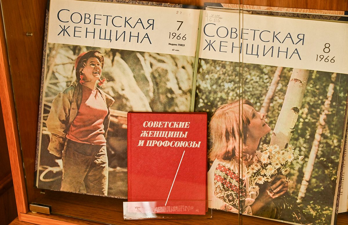 Самый информативный – второй раздел выставки. Здесь можно познакомиться с редкими периодическими изданиями и листовками профессиональных организаций с 1906 до середины 1920-х годов: изданиями печатников, приказчиков и конторщиков, булочников, металлистов, деревообделочников, текстильщиков, портных, табачников, писчебумажников, фельдшеров, работников водного транспорта, телеграфа, связи и др. С переходом к централизованной советской системе организации профсоюзов по производственному принципу, меняются смыслы и содержание периодической печати. В третьем разделе выставки, охватывающем период с конца 1920-х до конца 1980-х- годов, с использованием профсоюзной периодики, документов, исследований, рассказывается о многочисленных государственных функциях советских профсоюзов в областях социального обеспечения и социального страхования трудящихся, профессионального образования и повышения квалификации, организации и проведении соцсоревнований, выполнения обязанностей по развитию культуры, туризма, спорта, работы с подрастающим поколением и др.