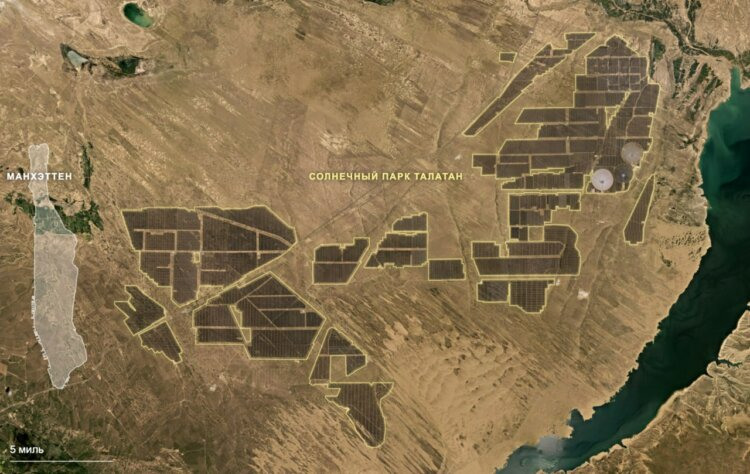 Размер солнечной станции Талатан в сравнение с Манхэттеном. Источник изображения: t.me/gptpublic