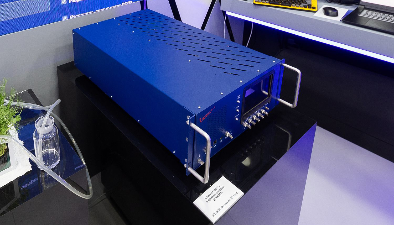 ЦСЧВ-2021 — высокотехнологичный прибор, генерирующий стабильные сигналы, относительно которых выполняется точная настройка и поверка телекоммуникационного оборудования. Устройство оснащено атомно-лучевой трубкой, где в качестве рабочего вещества используется цезий-133 — единственный стабильный изотоп этого химического элемента. По своим параметрам изделие соответствует лучшим мировым аналогам и способно прослужить не менее десяти лет.