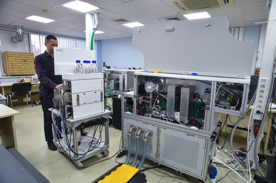 «Сейчас в России производят только более простые масс-спектрометры, например, для анализа газов. Наш прибор делает возможным исследование жидкостей, он более сложен, позволяет транспортировать ионы из области атмосферного давления в вакуум, где находятся три радиочастотных устройства – два квадрупольных фильтра масс и ячейка фрагментации ионов между ними. Он предназначен для количественного молекулярного анализа, который определяет, во-первых, молекулярный состав сложных смесей и, во-вторых, концентрацию конкретных веществ в смеси, – рассказал главный конструктор опытно-конструкторской работы, руководитель лаборатории «Прикладная ионная физика и масс-спектрометрия», профессор кафедры «Молекулярная физика» Института лазерных и плазменных технологий НИЯУ МИФИ Алексей Сысоев. – В масс-спектрометрах используется разделение ионов в электрических и магнитных полях. Конкретно в нашем приборе используются радиочастотные электрические поля, через которые проходят ионы, и которые работают как фильтры масс».