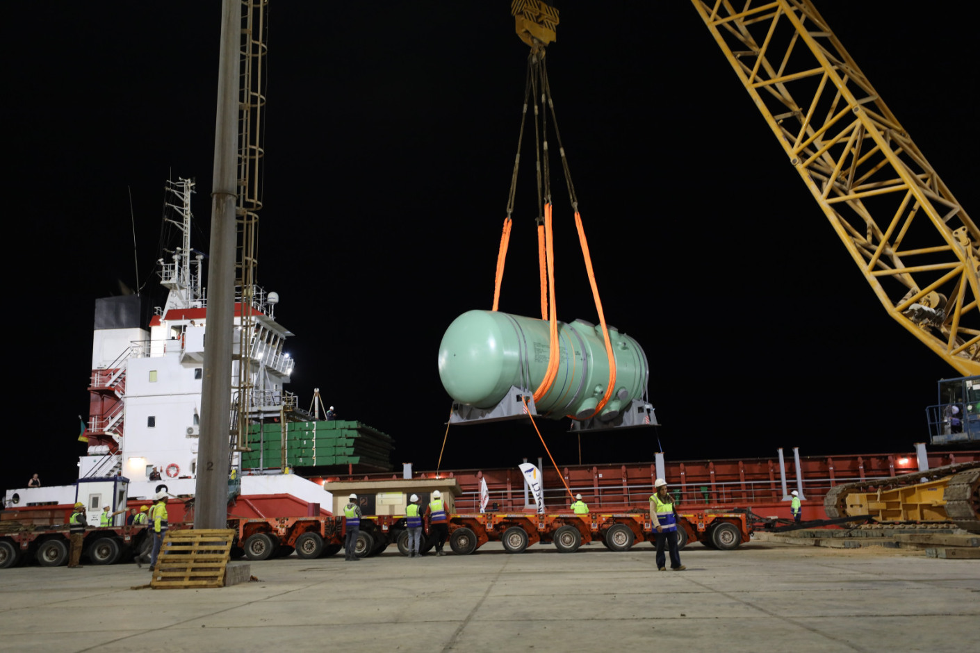 «Корпус реактора для первого энергоблока был доставлен в специализированный порт строительной площадки АЭС «Эль-Дабаа», построенный египетской стороной для приёма крупногабаритного оборудования. Установка корпуса реактора запланирована на середину ноября, и наши команды неустанно работают над достижением этого ключевого этапа проекта», — отметил председатель Управления по атомным электростанциям Шериф Хелми.