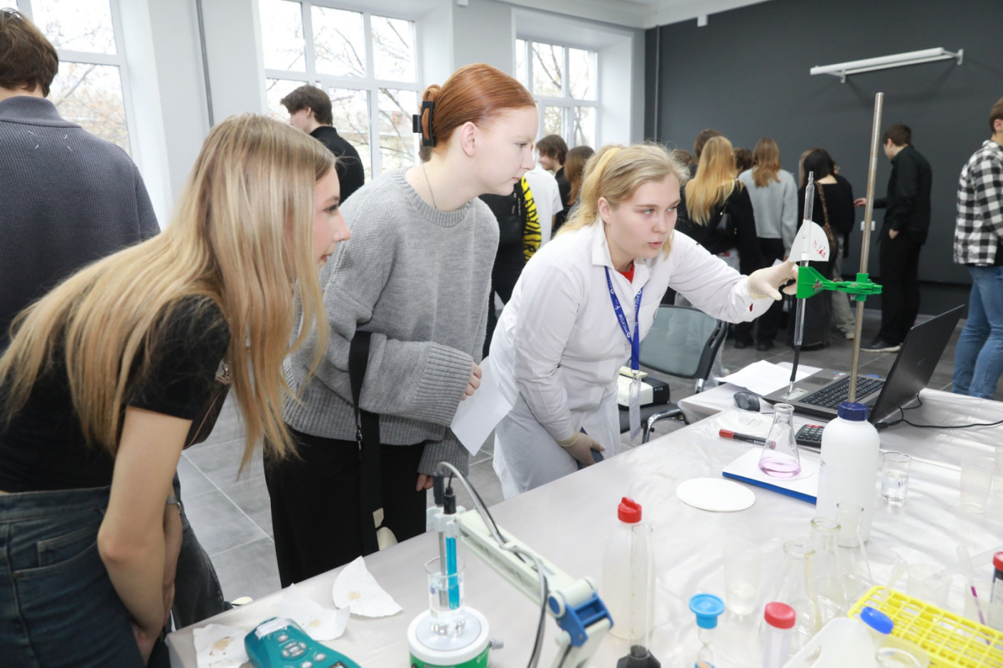 На профориентационных станциях, подготовленных специалистами ГХК, ребята наблюдали эксперименты, сами выполняли лабораторные задания, знакомились с приборами и оборудованием, применяемыми на производстве. Школьники узнали, как проводится химический анализ материалов, почему в радиохимии важна точность и ответственность, и какие качества помогают инженерам быть успешными в своей работе.