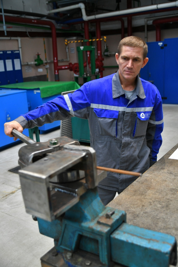 Слесарь-ремонтник цеха централизованного ремонта (ЦЦР) Ростовской АЭС Алексей Филинков придумал и изготовил устройство для обработки арматуры, с которым процесс изготовление деталей проходит быстрее и безопаснее, - арматурогиб.