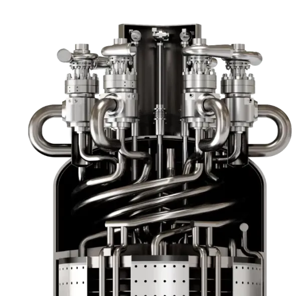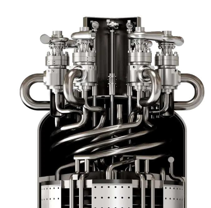 Интегральный реактор на расплавах солей (IMSR) — это реактор IV поколения, в котором расплавленная соль используется одновременно в качестве топлива и теплоносителя. Конструкция интегрирована в единый модуль, способный либо напрямую обеспечивать промышленные предприятия теплом, либо производить электроэнергию.